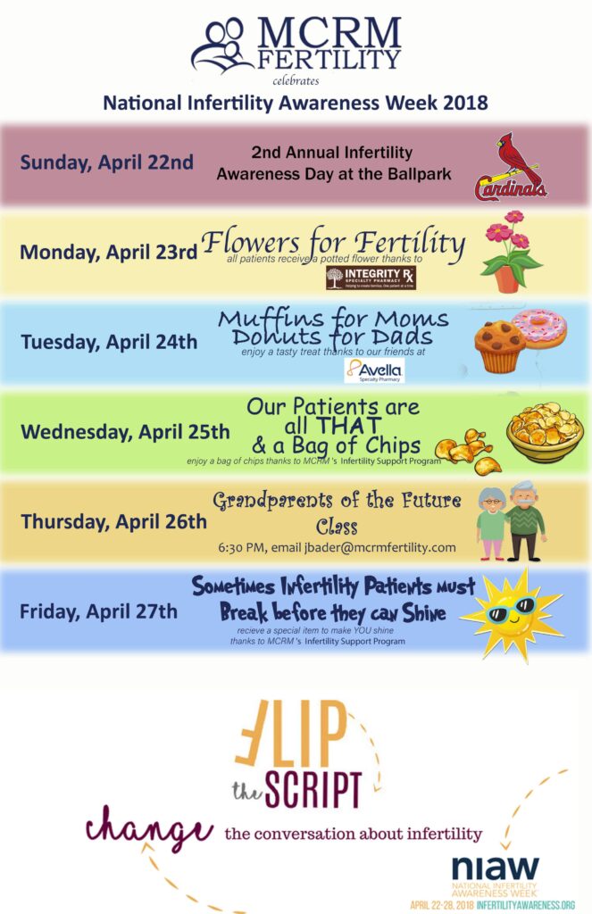 The Infertility Support Program will be hosting daily events to commemorate this special week. The week kicks off with Infertility Awareness Day at the Ballpark on Sunday followed by: